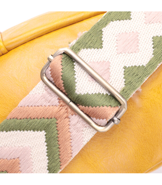 Яркая женская сумка через плечо на каждый день из качественной экокожи, которая является альтернативой натуральной коже. Данная модель состоит из одного основного отделения которое закрывается на молнию и в котором находятся три кармана для кредитных карт внутри, а также одного потайного кармана на лицевой стороне, что закрывается на магнит и на карабин. Акцентом данной модели является удобный регулируемый плечевой ремешок в этническом стиле, что очень модно уже несколько сезонов. Экокожа - высококачественная альтернатива натуральному материалу, которая очень устойчива к трению, к низким температурам, отлично носится в отличии от других искусственных материалов, а также имеет гипоаллергенный состав в отличии от натуральной кожи. Мода не стоит на месте, на смену классическим сумкам приходят новые модели, которые обусловлены современным временем, именно такой является слинг сумка - удобная, практичная, небольшая, но вместительная и главное качественная.