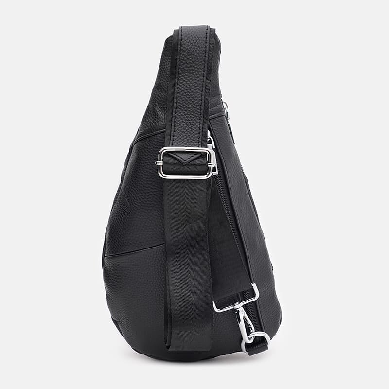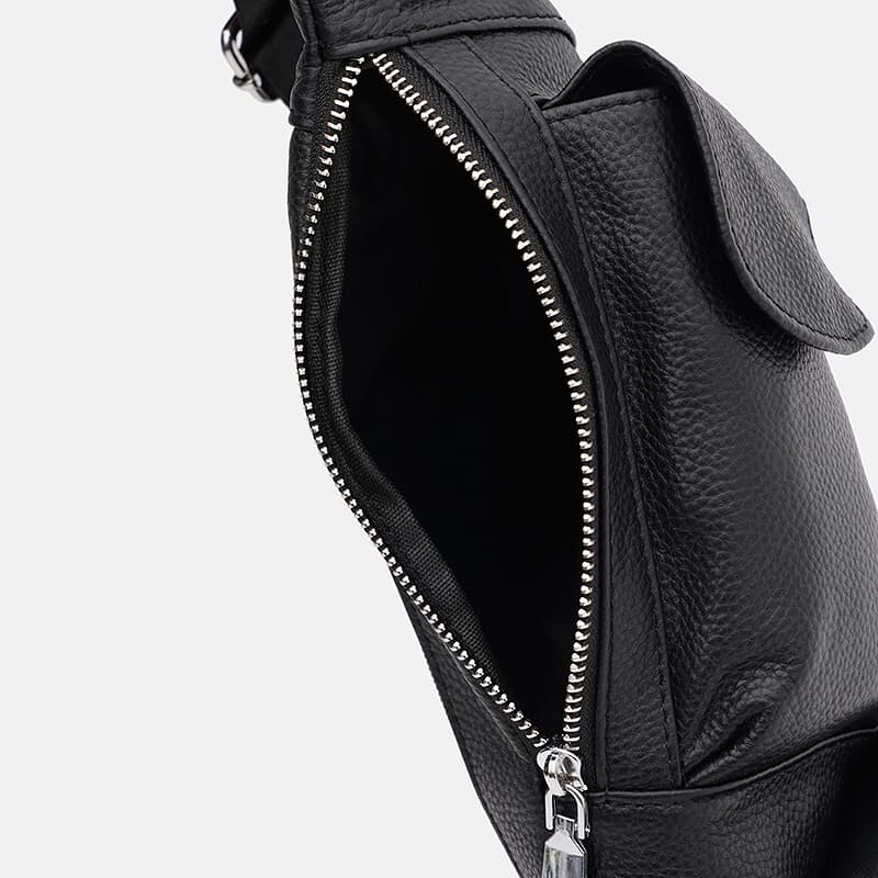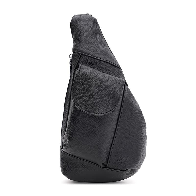 Рюкзак через плечо - из натуральной кожи. Имеет 1 основное отделение на молнии. С лицевой стороны — 2 кармана на молнии. С тыльной стороны — 1 вертикальный карман на молнии. Подкладка — текстиль. Несъемный плечевой ремень из текстиля регулируется по длине.