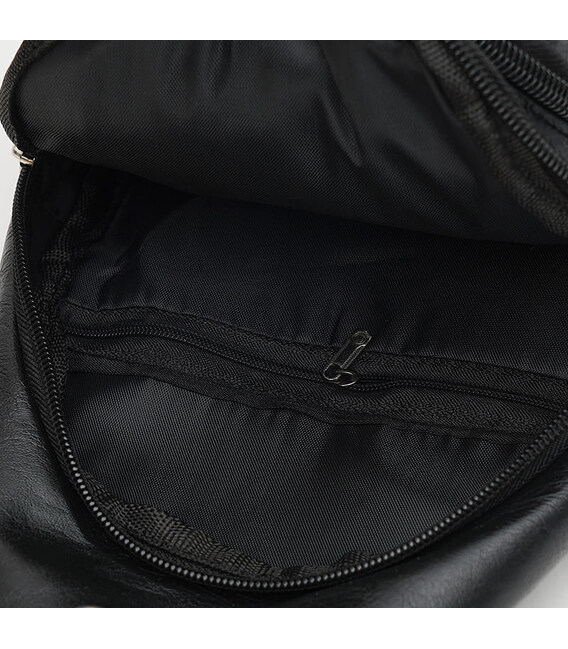 Рюкзак через плечо закрывается на молнию, имеет 1 основное отделение, 2 кармана с лицевой стороны и 1 карман внутри. Подкладка текстиль,несъемный плечевой ремень регулируется по длине.