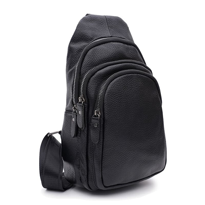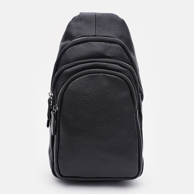 Мужской кожаный рюкзак, имеет 2 отделения на молнии, внутри 1 карман для мелочей. Снаружи 2 кармана. Подкладка текстиль. В комплекте несъемный плечевой ремень.