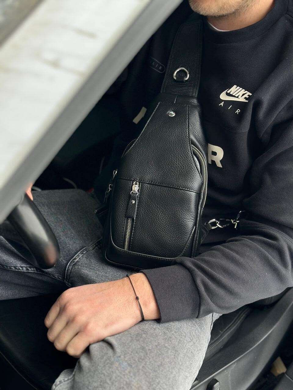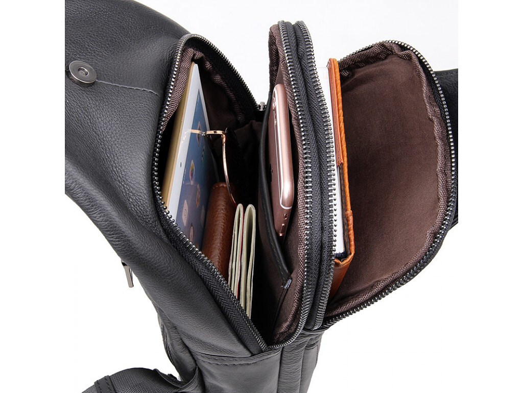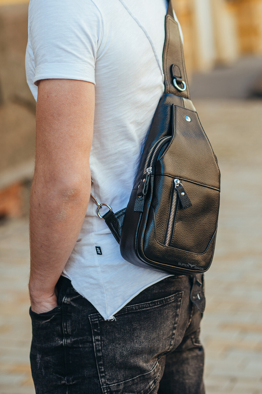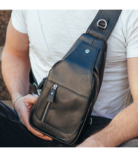 Кожаный черный мужской слинг рюкзак на одно плече TIDING BAG A25F-617-1A
