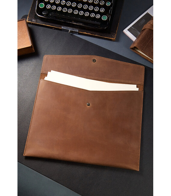 Практичная и стильная кожаная папка для документов BN-DC-7 создана для удобного хранения и транспортировки важных бумаг формата A4. Лаконичный дизайн в виде конверта придаёт аксессуару элегантный и деловой вид, что отлично подходит для работы, встреч и повседневного использования.Папка изготовлена из натуральной кожи, которая отличается прочностью, долговечностью и приятной фактурой. Закрывается на кнопку, что надёжно фиксирует содержимое и позволяет быстро открывать и закрывать папку.Размеры папки:внутренний размер — 24 × 32 см (подходит для документов формата A4) внешний размер — 335 × 255 ммМодель идеально подходит для хранения документов, договоров, бумаг для презентаций или рабочих материалов. Минималистичный дизайн делает папку универсальным аксессуаром как для мужчин, так и для женщин.Гарантия — 3 года с момента покупки.ВНИМАНИЕ! Особенность данной кожи предусматривает естественное появление на ней царапин и потёртостей в процессе использования! Благодаря этому изделие приобретает более индивидуальный и приятный внешний вид — это оценят настоящие ценители винтажного стиля :) Также в первое время кожа может окрашивать при сильном трении о другие предметы — это особенность выделки, со временем этот эффект уменьшается, кожа полируется и приобретает лёгкий глянцевый эффект.Фурнитура и комплектация могут быть изменены производителем.