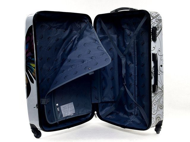 Внутри чемодан вымощен тканью и оснащен крепительными ремнями для обеспечения дополнительной безопасности Ваших вещей.