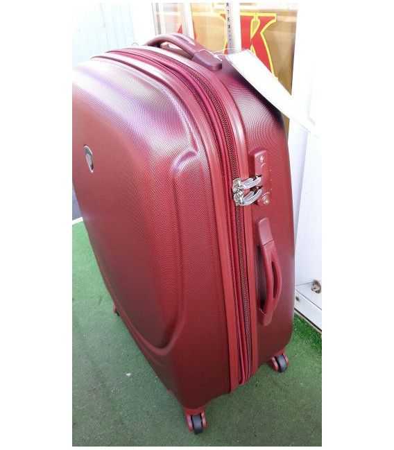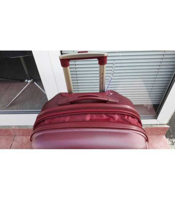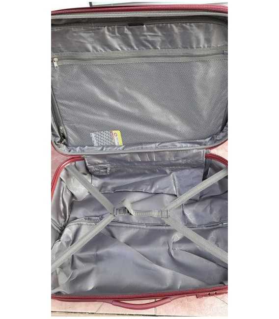В середине чемодана есть 2 отделения которые закрываются на молнию. Сверху и сбоку чемодана расположены стационарные ручки для ручного переноса в вертикальном или горизонтальном положениях. Имеется выдвижная телескопическая ручка на металлической основе с кнопкой для фиксации высоты.