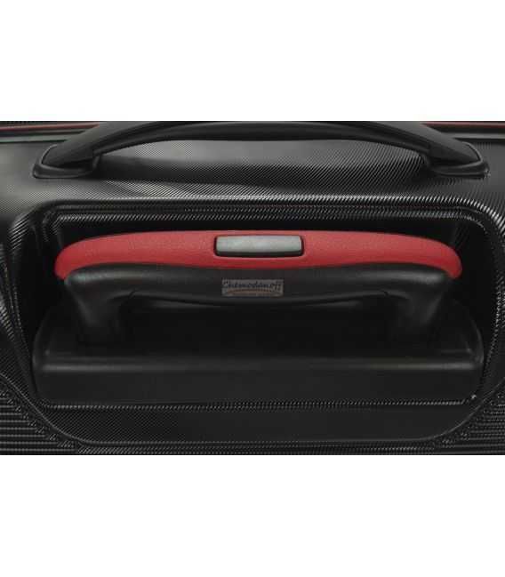 В чемодана есть 2 отделения: одно с фиксирующими ремнями, другое закрывается на молнию. Сверху и сбоку чемодана расположены стационарные ручки для ручного переноса в вертикальном или горизонтальном положениях. Имеется выдвижная телескопическая ручка на металлической основе с кнопкой для фиксации высоты.