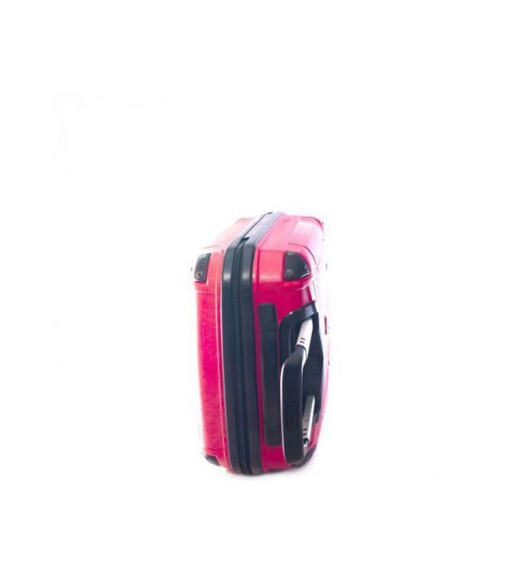 В чемодана есть 2 отделения: одно с фиксирующими ремнями, другое закрывается на молнию. Сверху и сбоку чемодана расположены стационарные ручки для ручного переноса в вертикальном или горизонтальном положениях. Имеется выдвижная телескопическая ручка на металлической основе с кнопкой для фиксации высоты.