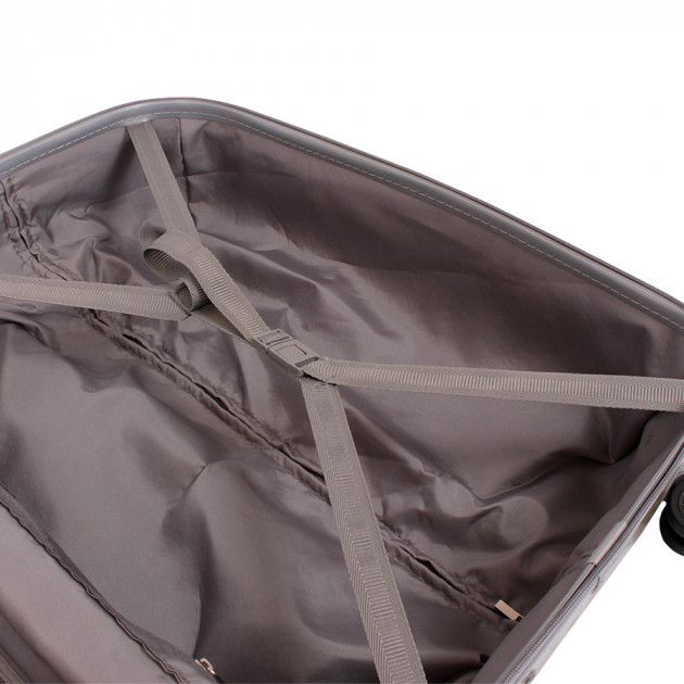 — Функциональный. Чемодан имеет вместительное отделение с прижимными ремнями и сетчатым карманом на перегородке.