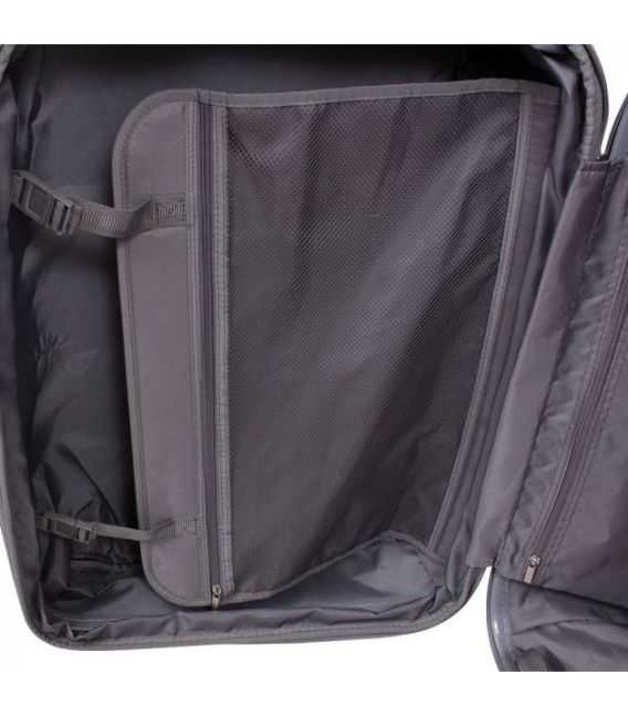 — Функциональный. Чемодан имеет вместительное отделение с прижимными ремнями и сетчатым карманом на перегородке.