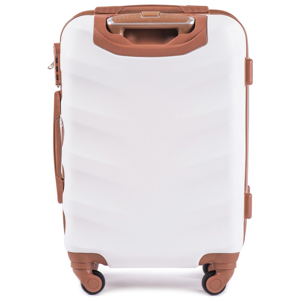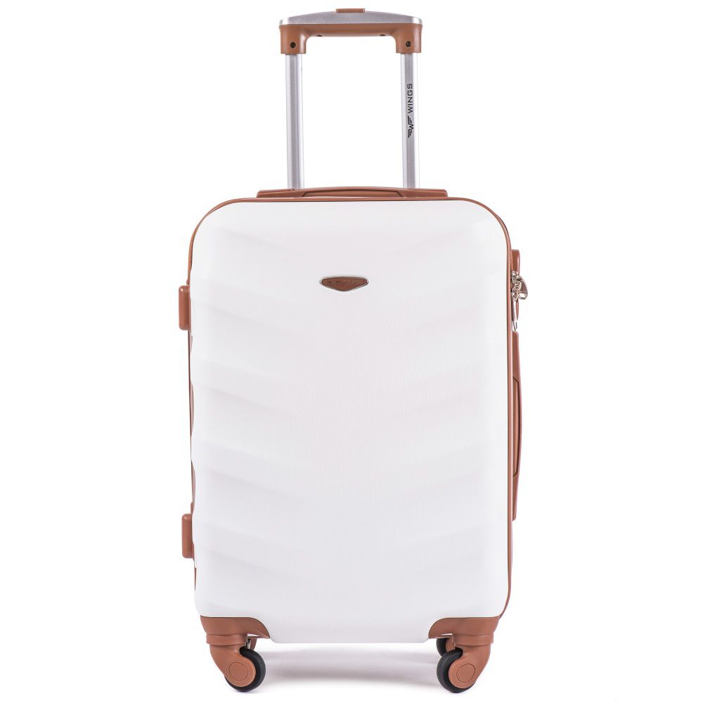 Чемодан на колесиках Wings выполнен из надежного ударопрочного сплава пластика ABS, что позволяет ему быть прочным и легким, а также испльзовать для любых путешествий. Чемодан имеет жесткую форму. Изделие закрывается на молнию. Чемодан оснащен телескопической ручкой на металлической основе и подъемной пластиковой ручкой на боковой поверхности, а также ручкой, которая расположена сверху чемодана. Четыре колеса поворачиваются на 360 градусов для удобства качения. Есть кодовый замок для сохранности вещей. Внутри изделия есть прижимные ремни для багажа. На другой боковой поверхности расположены небольшие пластиковые ножки. Чемодан обладает водоотталкивающими свойствами и стойкостью к выгоранию.