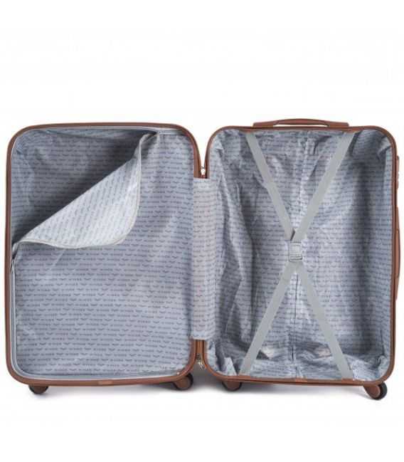 Чемодан на колесиках Wings выполнен из надежного ударопрочного сплава пластика ABS, что позволяет ему быть прочным и легким, а также испльзовать для любых путешествий. Чемодан имеет жесткую форму. Изделие закрывается на молнию. Чемодан оснащен телескопической ручкой на металлической основе и подъемной пластиковой ручкой на боковой поверхности, а также ручкой, которая расположена сверху чемодана. Четыре колеса поворачиваются на 360 градусов для удобства качения. Есть кодовый замок для сохранности вещей. Внутри изделия есть прижимные ремни для багажа. На другой боковой поверхности расположены небольшие пластиковые ножки. Чемодан обладает водоотталкивающими свойствами и стойкостью к выгоранию.