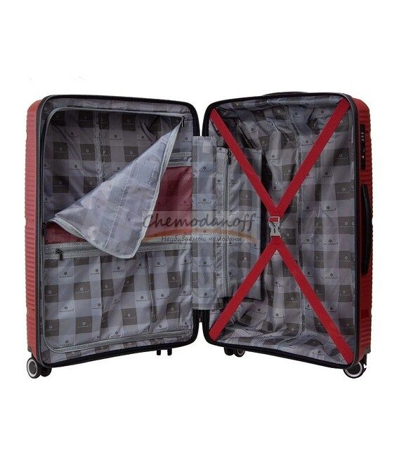 Тщательно продуманный интерьер чемоданы обеспечивает удобную упаковку и акуратную транспортировки Ваших вещей в дороге. Чемодан закрывается на водонепроницаемую молнию. Два просторных отделения имеют перегородку из материала на молнии с одной стороны и специальные ремни для фиксации багажа с другой. Дополнительные карманы на молнии в подложке.