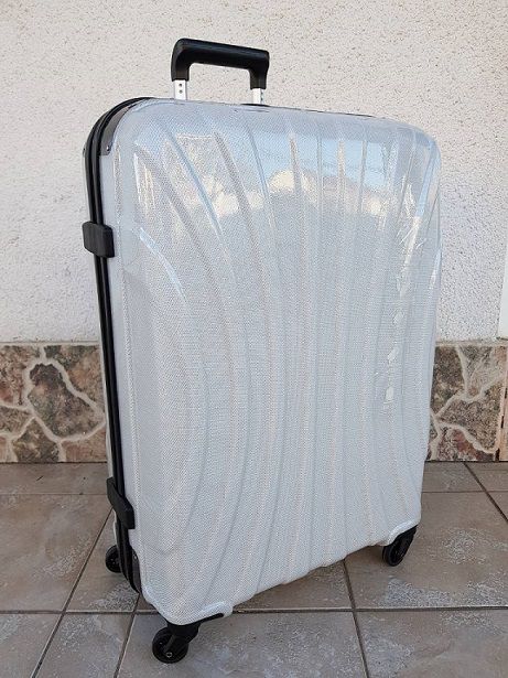 Современный и удобный дорожный чемодан на колёсах из ударопрочного износостойкого инновационного материала PC ABS поликарбоната, с бесшумными металлическими колёсами на подшипниках, оснащёнными прорезиненной покрышкой, которые вращаются вокруг своей оси, снабжён прочной выдвижной ручкой с фиксатором. Все чемоданы имеют кодовый замок, внутри два отделения разделены тканью на молнии, на разделяющей ткани карман, эластичные ремни для фиксации вещей, корпус чемодана твердый и прочный, почти не прогибается.