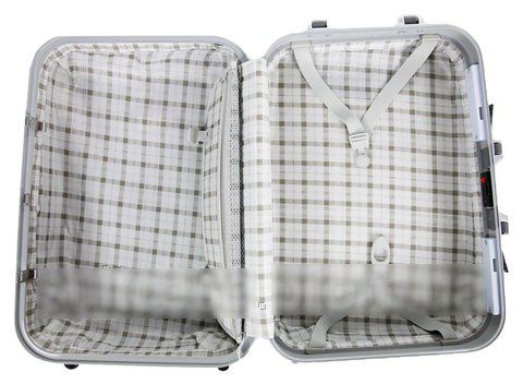 В чемодана есть 2 отделения: одно с фиксирующими ремнями, другое закрывается на молнию. Сверху и сбоку чемодана расположены стационарные ручки для ручного переноса в вертикальном или горизонтальном положениях. Имеется выдвижная телескопическая ручка на металлической основе с кнопкой для фиксации высоты.
