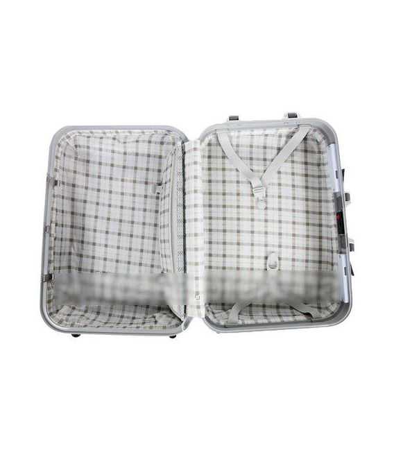В чемодана есть 2 отделения: одно с фиксирующими ремнями, другое закрывается на молнию. Сверху и сбоку чемодана расположены стационарные ручки для ручного переноса в вертикальном или горизонтальном положениях. Имеется выдвижная телескопическая ручка на металлической основе с кнопкой для фиксации высоты.