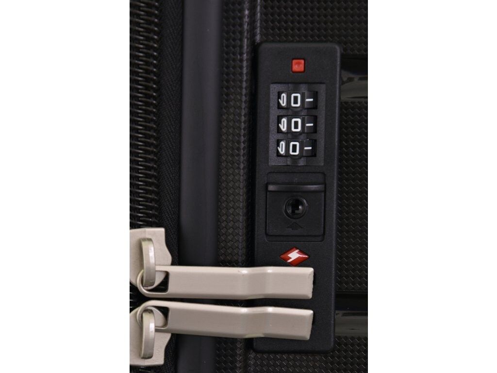 Очень легкий, но стойкий к повреждениям чемодан сделан из 100% полипропилена. Матовая шершавая поверхность корпуса снижает количество царапин. Четыре двойных колеса улучшают маневренность чемодана. Чемодан оснащен телескопической ручкой с кнопкой регулирования высоты; также есть боковая и верхняя ручка для удобства переноски. Чемодан закрывается на водостойкую молнию "анти-вор" и дополнительно оснащен замком TSA.