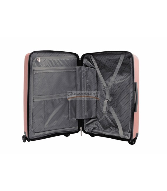 Чемодан полностью изготовлен из полипропилена, легко буксируется благодаря 4 двойным колесам, поворачивающимся на 360 °, которые обеспечивают плавное качение, а также телескопической штанге с двойной трубкой с кнопкой.