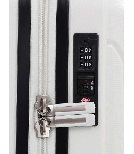 Алюминиевая телескопическая ручка с ребрами жесткост, фиксируется в 2-х положениях, встроенный кодовый замок с функцией "TSA". Основная молния корпуса – непромокаемая.