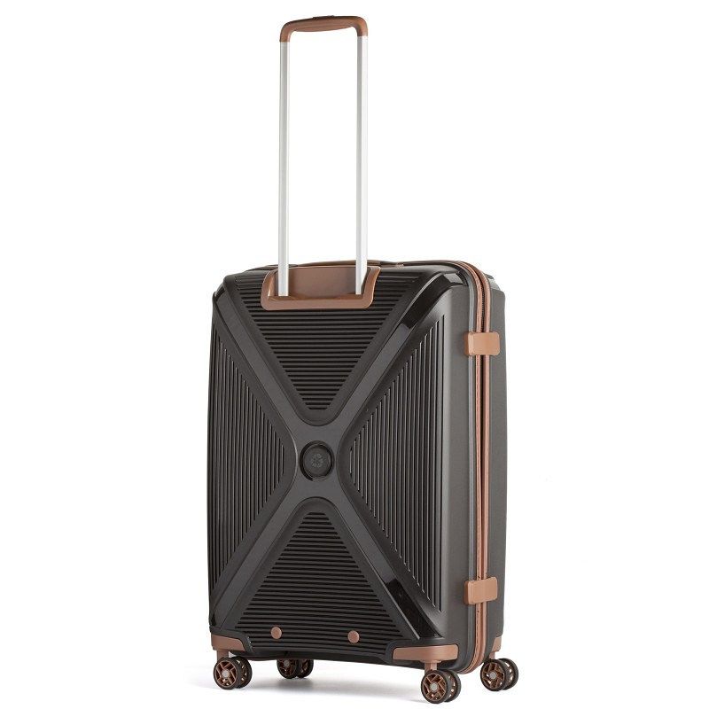 • Матовая, шероховатая текстура внешней отделки корпуса для снижения количества царапин (ребра на поверхности чемодана обеспечивают дополнительную защиту за счет изменения траектории ударов);