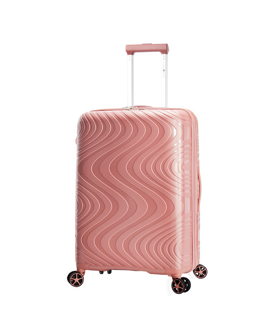 Бесшумное и плавное перемещение обеспечивают полиуретановые колеса на подшипниках, вращающиеся на 360 град, придавая чемоданам дополнительную манёвренность и давая возможность перемещать его в вертикальном положении.