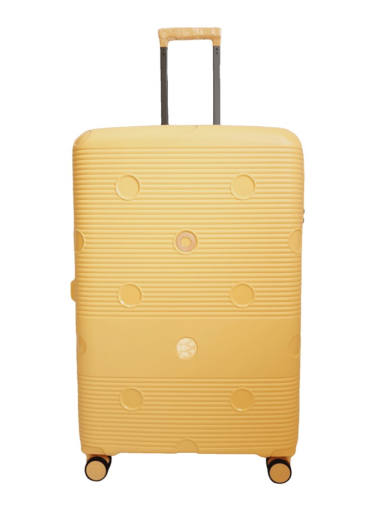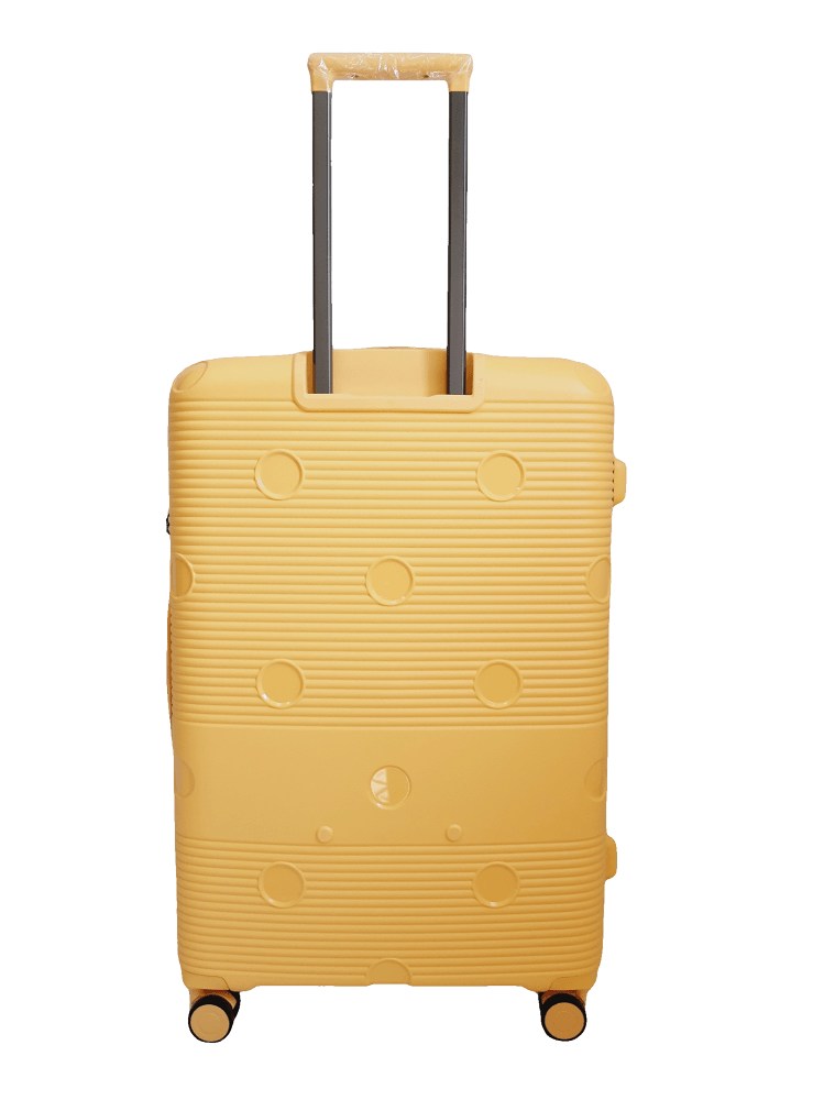 Комплект легких пластиковых 4-колесных чемоданов желтого цвета большого, среднего и малого размера Airtex Jupiter.