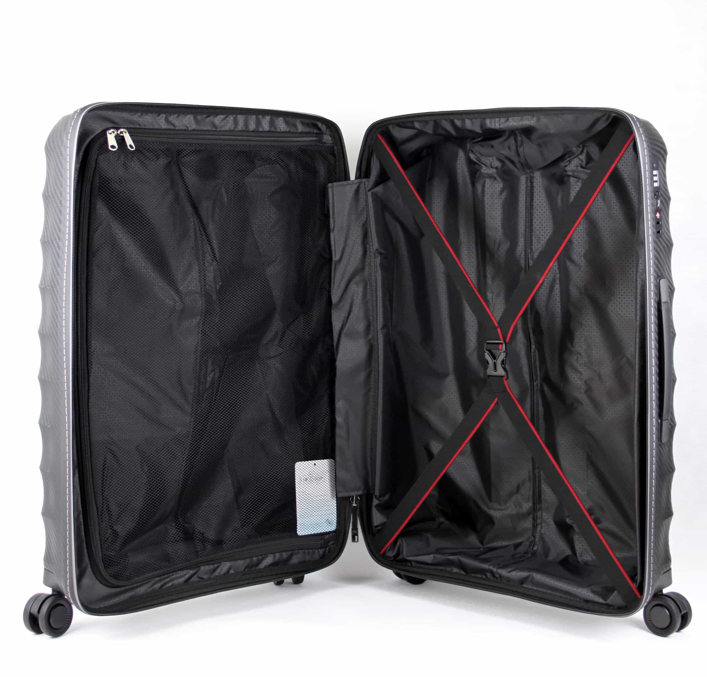 Чемоданы изготовлены с очень сильного полукристаллического материала - полипропилен, который избегает хрупкого разрушения. Полипропилен характеризуется высокой гибкостью и устойчивостью к высоким давлением (до 250 кг), о чем свидетельствуют многочисленные испытания, проведенные во Франции. Они идеально подходят для авиа перелетов, где багаж особенно уязвимым к повреждениям. Имеют кодовый замок TSA. Шасси состоит из четырех независимых вращающихся полиуретановых колес с подшипниками, так что чемодан может вращаться вокруг своей оси. Внутри чемодана имеется 2 отделения, одно с прижимными ремнями, другое закрывается на молнию. Супер легкие!