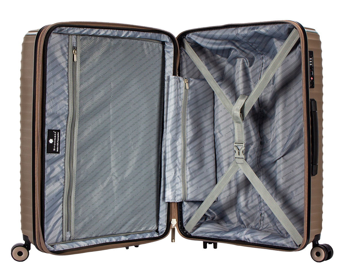 Новая коллекция от Snowball, чемоданы этого бренда отличаются не только функциональностью и легкостью, но и стильным внешнем видом. Уникальный притягивающий взгляд дизайн симметричных линий подчеркивает отличный вкус его владельца. Отличное качество и выносливость материала - полипропилена - позволит Вам длительное время пользоваться чемоданом. Благодаря функции расширения Вы можете увеличить объем Вашего чемодана и разместить еще больше необходимых вещей.
