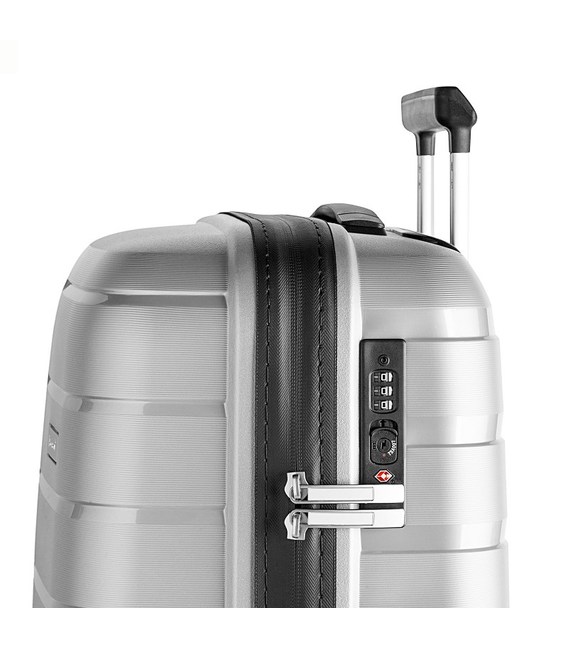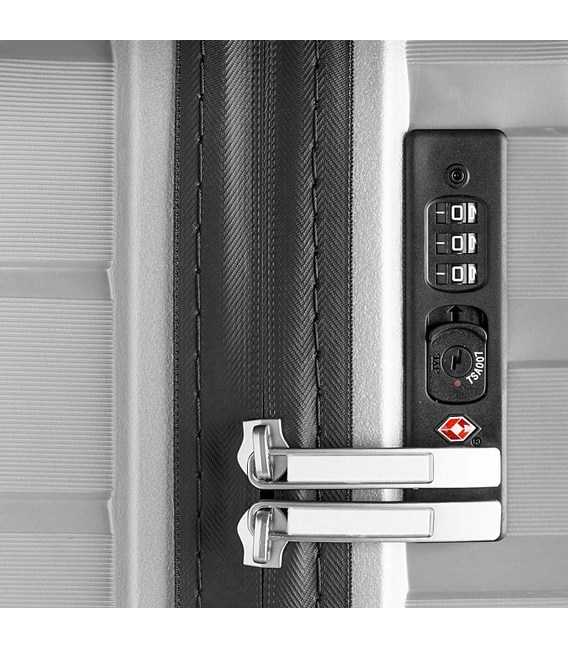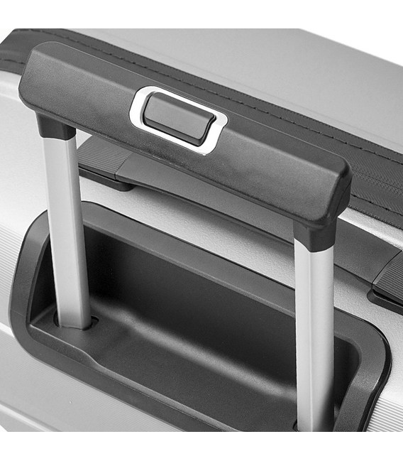Алюминиевая телескопическая ручка с ребрами жесткост, фиксируется в 2-х положениях, встроенный кодовый замок с функцией "TSA". Основная молния корпуса – непромокаемая.