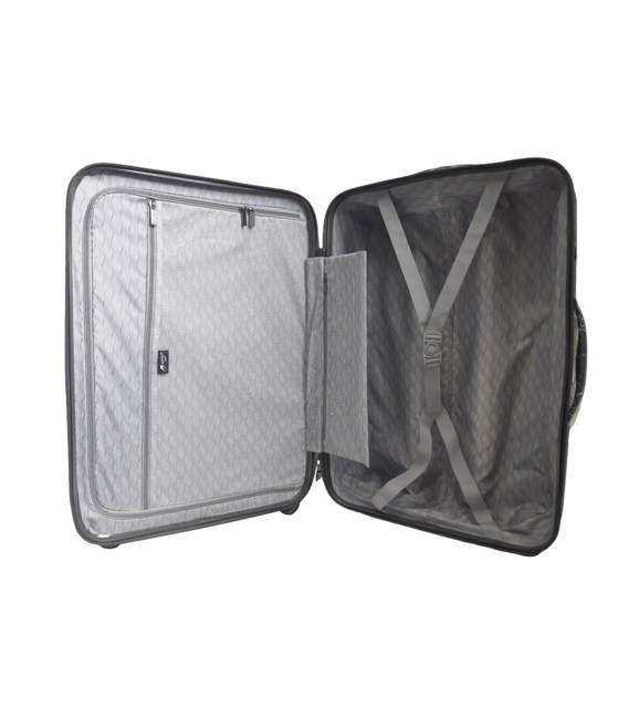 В чемодана есть 2 отделения: одно с фиксирующими ремнями, другое закрывается на молнию. Сверху и сбоку чемодана расположены стационарные ручки для ручного переноса в вертикальном или горизонтальном положениях. Имеется выдвижная телескопическая ручка на металлической основе с кнопкой для фиксации высоты.