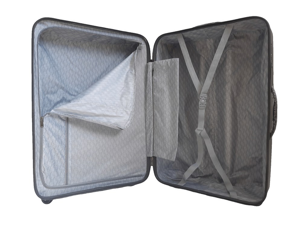 В чемодана есть 2 отделения: одно с фиксирующими ремнями, другое закрывается на молнию. Сверху и сбоку чемодана расположены стационарные ручки для ручного переноса в вертикальном или горизонтальном положениях. Имеется выдвижная телескопическая ручка на металлической основе с кнопкой для фиксации высоты.