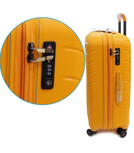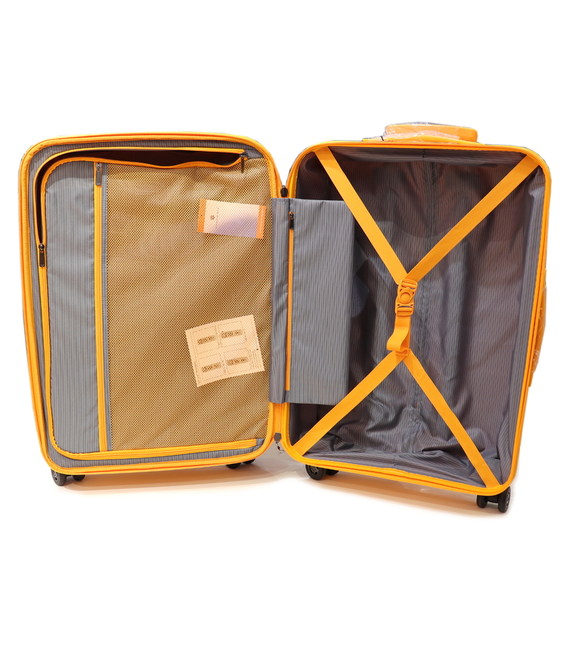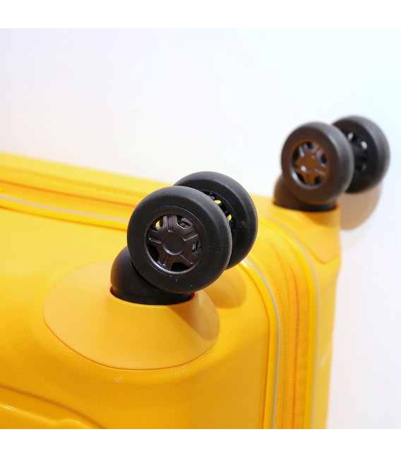 Материал корпуса -100% полипропилен, один из лучших материалов применяемых при производстве дорожных чемоданов. Представленная модель – разработка и гордость компании. Основная часть корпуса чемодана армирована нитью из стекловолокна – высочайшая устойчивость к деформации и истиранию.