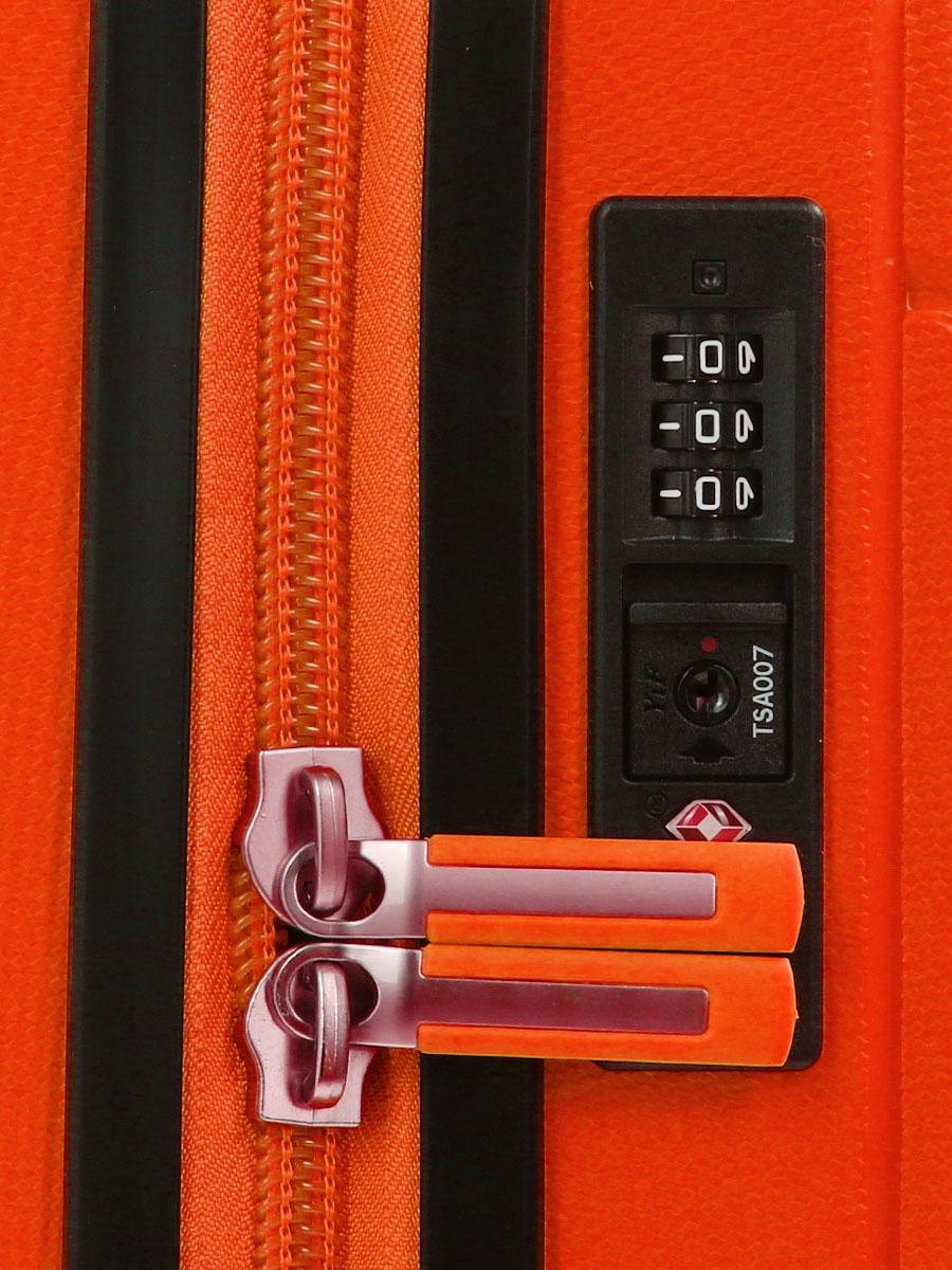 Алюминиевая телескопическая ручка с ребрами жесткост, фиксируется в 2-х положениях, встроенный кодовый замок с функцией "TSA". Основная молния корпуса – непромокаемая.