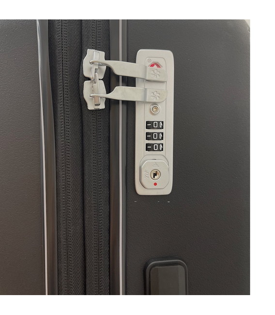 Алюминиевая телескопическая ручка с ребрами жесткост, фиксируется в 2-х положениях, встроенный кодовый замок с функцией "TSA". Основная молния корпуса – непромокаемая.
