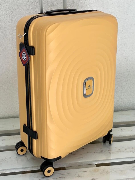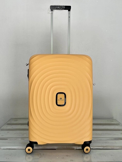 Чемодан имеет 4 бесшумных полиуретановых колеса на металлическом подшипнике, радиус вращения 360 градусов;