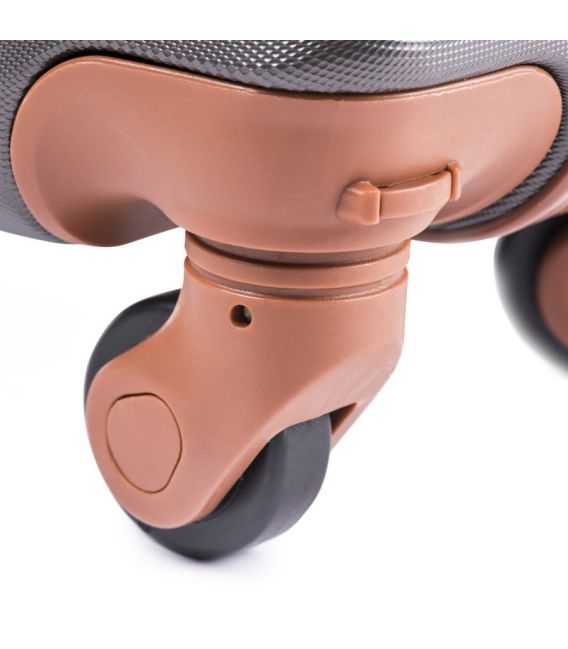 Чемодан на колесиках Wings выполнен из надежного ударопрочного сплава пластика ABS, что позволяет ему быть прочным и легким, а также испльзовать для любых путешествий. Чемодан имеет жесткую форму. Изделие закрывается на молнию. Чемодан оснащен телескопической ручкой на металлической основе и подъемной пластиковой ручкой на боковой поверхности, а также ручкой, которая расположена сверху чемодана. Четыре колеса поворачиваются на 360 градусов для удобства качения. Есть кодовый замок для сохранности вещей. Внутри изделия есть прижимные ремни для багажа. На другой боковой поверхности расположены небольшие пластиковые ножки. Чемодан обладает водоотталкивающими свойствами и стойкостью к выгоранию.