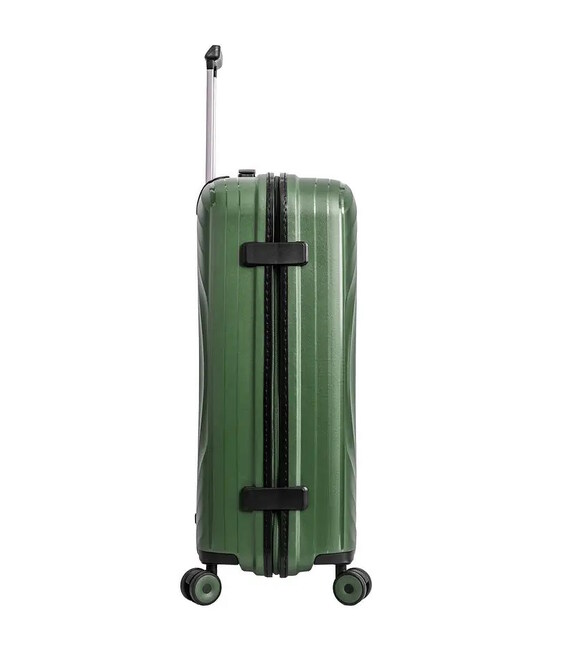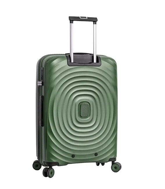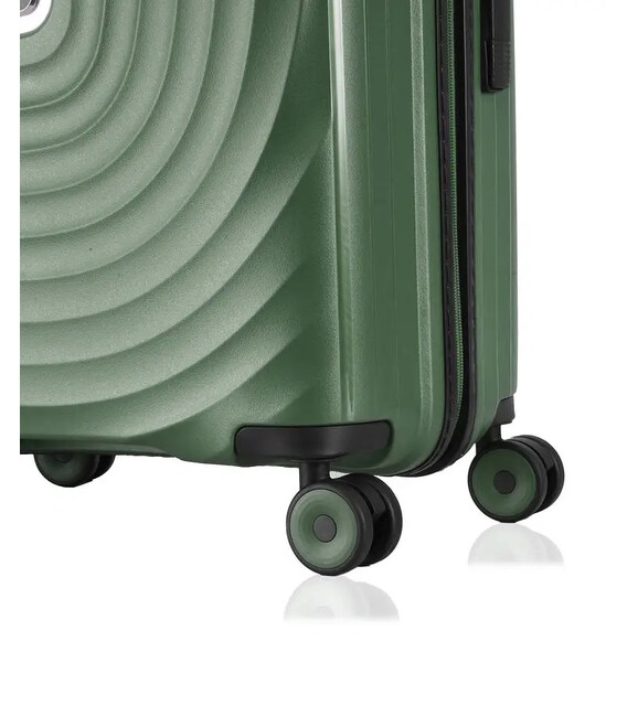Чемодан имеет 4 бесшумных полиуретановых колеса на металлическом подшипнике, радиус вращения 360 градусов;