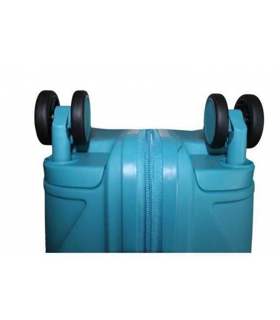 • Четыре спаренных, бесшумных колеса с плавным ходом позволяют катить чемодан в любом направлении (на 360 °), для легкой маневренности;