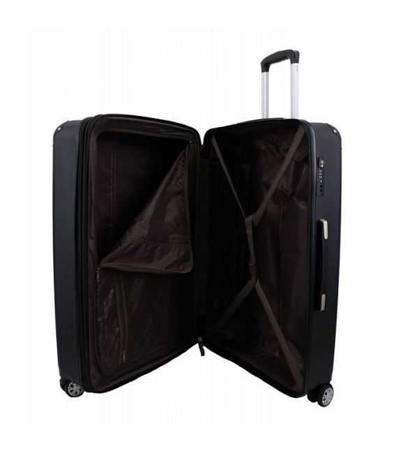 У чемодана есть 2 отделения: одно с фиксирующими ремнями, другое закрывается на молнию. Сверху и сбоку чемодана расположены стационарные ручки для ручного переноса в вертикальном или горизонтальном положениях. Имеется выдвижная телескопическая ручка на металлической основе с кнопкой для фиксации высоты.