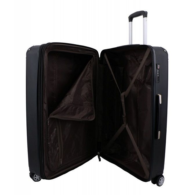 У чемодана есть 2 отделения: одно с фиксирующими ремнями, другое закрывается на молнию. Сверху и сбоку чемодана расположены стационарные ручки для ручного переноса в вертикальном или горизонтальном положениях. Имеется выдвижная телескопическая ручка на металлической основе с кнопкой для фиксации высоты.