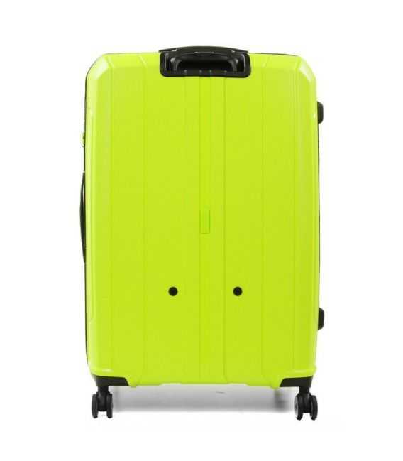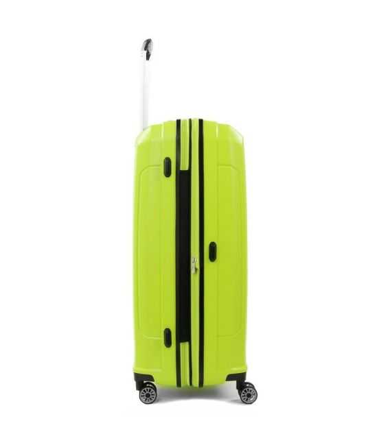 Материал корпуса -100% полипропилен, один из лучших материалов применяемых при производстве дорожных чемоданов. Представленная модель – разработка и гордость компании. Основная часть корпуса чемодана армирована нитью из стекловолокна – высочайшая устойчивость к деформации и истиранию.