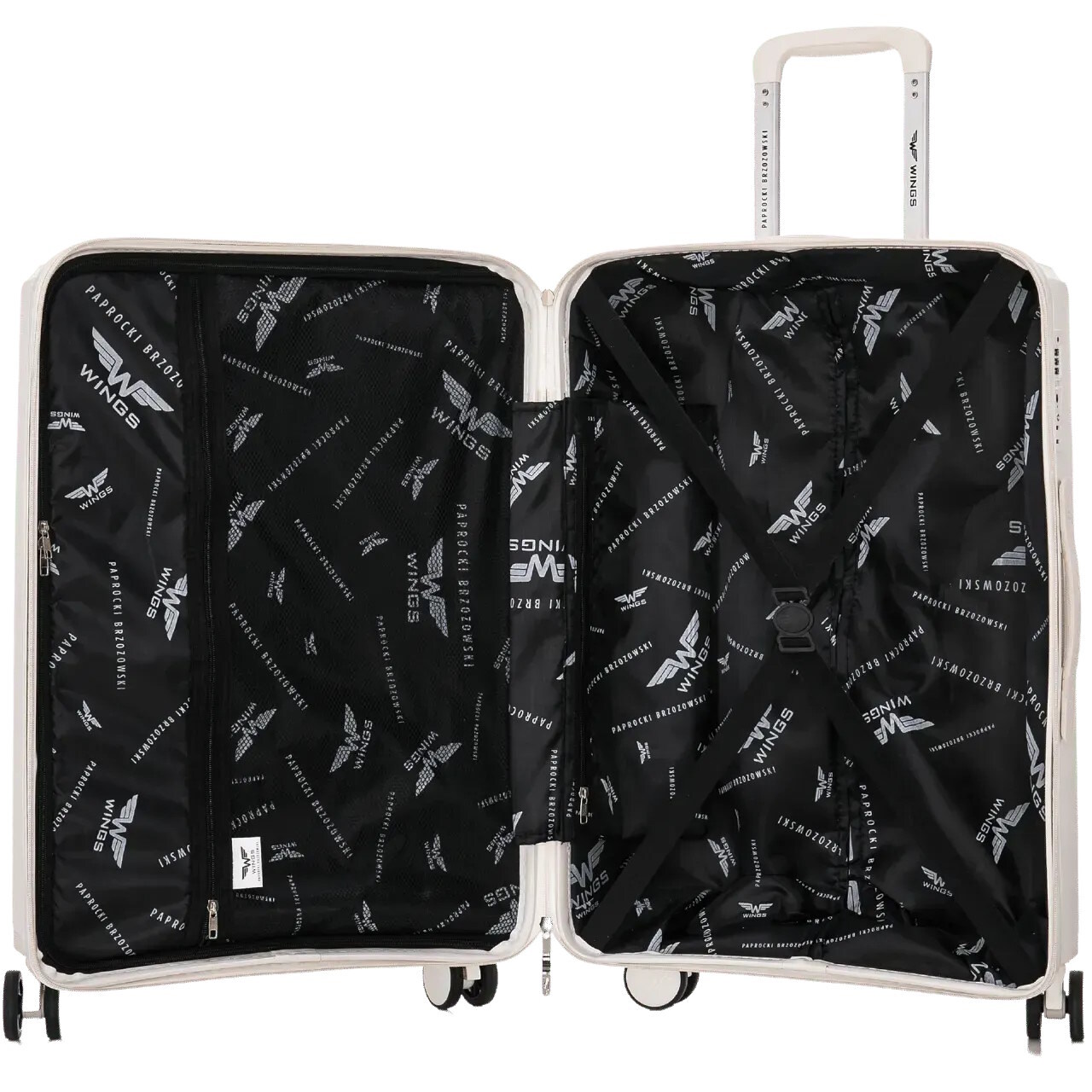 Внутреннее пространство оформлено стильной подкладкой с фирменными логотипами WINGS и PAPROCKI BRZOZOWSKI. Встроенный дополнительный карман обеспечивает быстрый доступ к мелочам, а внутренние стяжные ремни надежно фиксируют багаж.