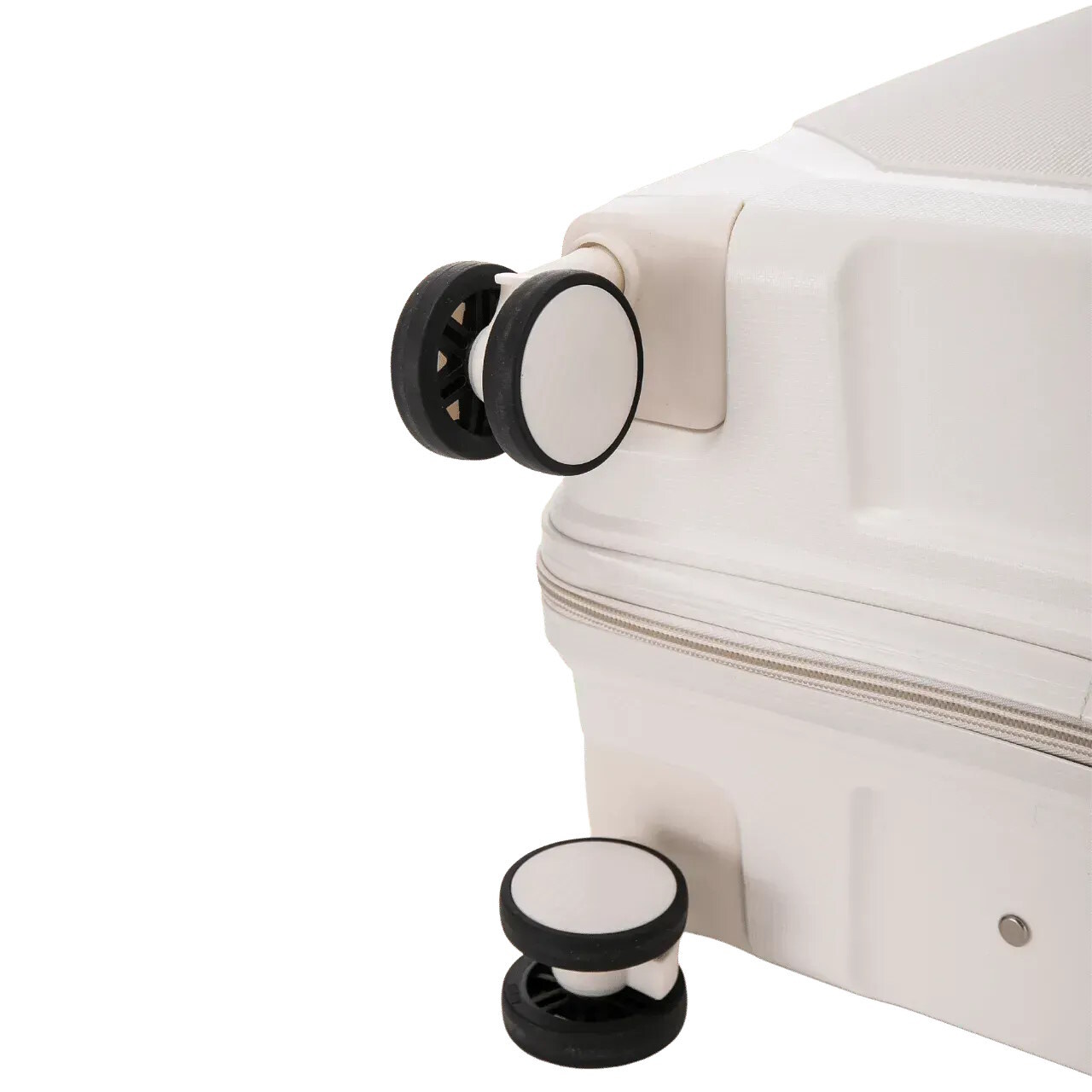 COCKATIEL полностью окрашен в один цвет, включая все внешние элементы: колеса, замки, ножки и телескопическую ручку. Корпус выполнен из высокопрочного полипропилена, обеспечивающего устойчивость к ударам, царапинам и трещинам.