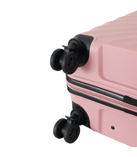 Стильный дизайн: корпус и замки выполнены в одном цвете, создавая гармоничный внешний вид. Черные контрастные элементы — резиновая защита замка, ручки, двойные колеса и телескопическая ручка — придают чемоданам современный характер.