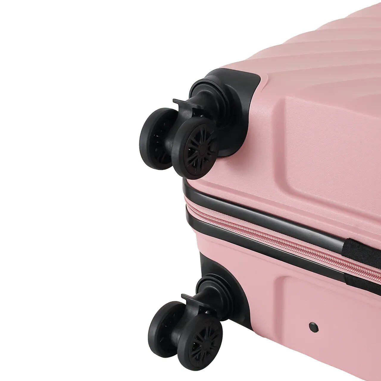 Стильный дизайн: корпус и замки выполнены в одном цвете, создавая гармоничный внешний вид. Черные контрастные элементы — резиновая защита замка, ручки, двойные колеса и телескопическая ручка — придают чемоданам современный характер.