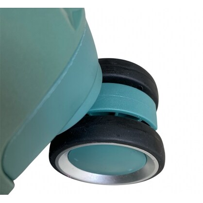 Оснащён четырьмя двойными поворотными колёсами, вращающимися на 360 градусов. Чемодан легко катится по любой поверхности — будь то аэропорт, вокзал или брусчатка.