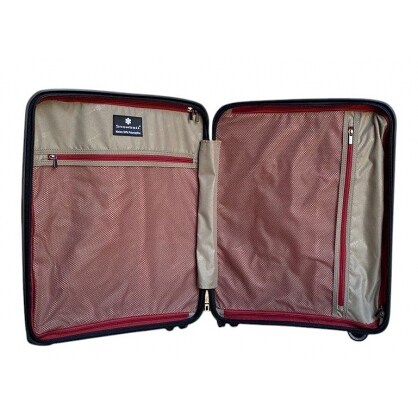 Тщательно продуманный интерьер чемоданы обеспечивает удобную упаковку и акуратную транспортировки Ваших вещей в дороге. Чемодан закрывается на водонепроницаемую молнию. Два просторных отделения имеют перегородку из материала на молнии с одной стороны и специальные ремни для фиксации багажа с другой. Дополнительные карманы на молнии в подложке. Чемодан имеет отдел для ноутбука и его можно брать в самолет как ручную кладь.