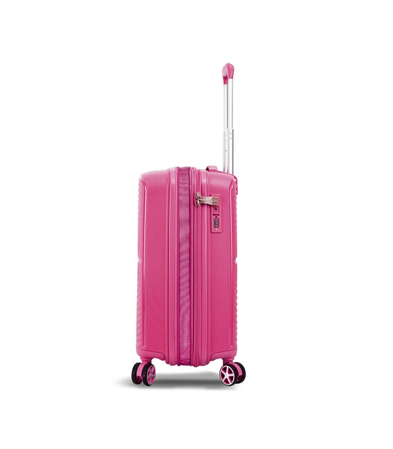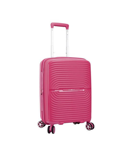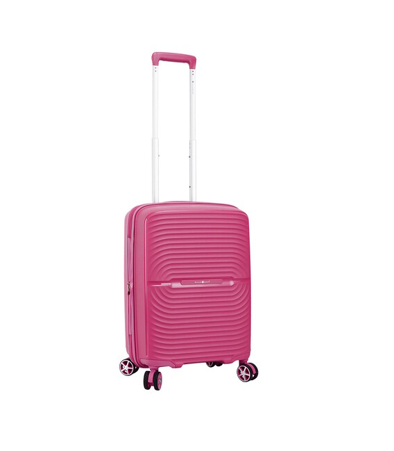 Четыре сдвоенных полиуретановых колеса вращаются на 360°, что позволяет без усилий катить чемодан в любом направлении.