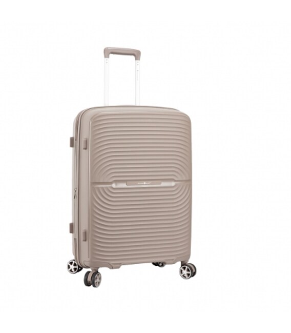 Четыре сдвоенных полиуретановых колеса вращаются на 360°, что позволяет без усилий катить чемодан в любом направлении.