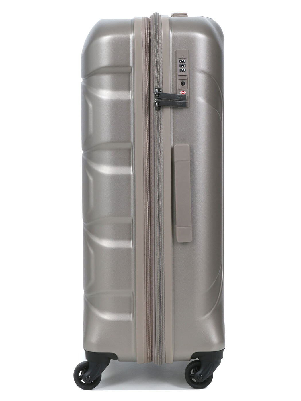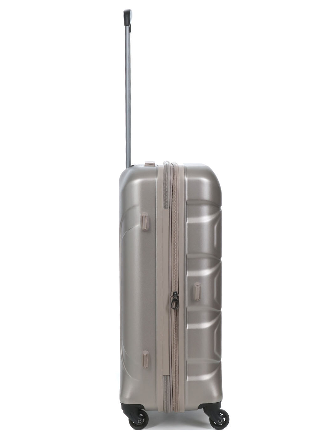 Защита от повреждений: Для удобства манипуляций предусмотрены две ручки (сверху и сбоку). На боковой панели расположены специальные защитные ножки-подставки, которые позволяют ставить чемодан на бок, не рискуя поцарапать поликарбонатный корпус.