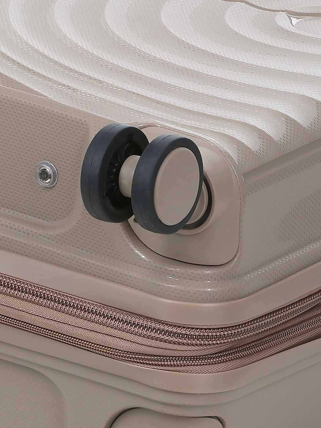 Проходимость: 4 сдвоенных колеса крутятся на 360 градусов. Чемодан послушный, не заваливается на поворотах и едет почти бесшумно.