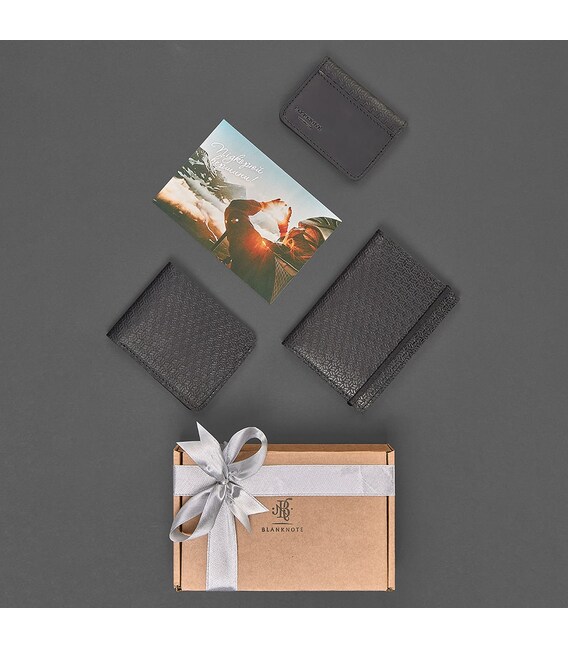 Как часто при выборе подарка мы мечемся из магазина в магазин, перерываем тонны информации на сайтах в поисках достойного подарка для друга, коллеги или члена семьи. Чтобы сделать вашу жизнь проще, а выбор подарков не утомительным, мастерская BlankNote создала подарочные наборы из самых необходимых предметов в повседневной жизни. Мы подобрали изделия, которые дополняют друг друга по функционалу, стилю, а также цветовой гамме.В подарочный Набор аксессуаров "Милан" входит:Портмоне 4.1 "Карбон" Графит. Стильное компактное портмоне. Предусмотрено место для небольшого количества карточек (4-6 шт) и купюр. Обложка на паспорт 2.0 "Карбон" Графит. Стильная и функциональная обложка для паспорта, в которой поместится не только паспорт, но и пластиковые карты (например, водительские права) Кард-кейс 4.0 "Карбон" Графит. Удобный кард-кейс для хранения документов, которые необходимо время от времени демонстрировать: водительские права, пропускной для работы, студенческий, ученический, проездной на метро и т.д. Имеет 2 кармашка с окошком и 1 обычный. Открытка с важными словами, которые мотивируют!Подарочный набор аксессуаров доступен в цвете ночное небо – Набор аксессуаров "Ливерпуль"ВНИМАНИЕ! Выделка данной кожи предполагает естественное появление на ней царапин и потертостей в ходе использования! От этого изделие становится более индивидуальным и приятным, это оценят настоящие поклонники винтажного стиля:) А так же первое время кожа может краситься при сильном трении об другие предметы - это особенность её выделки, постепенно этот эффект уменьшается, кожа полируется и приобретает чуть глянцевый эффект.Фурнитура и комплектация может быть изменена производителем
